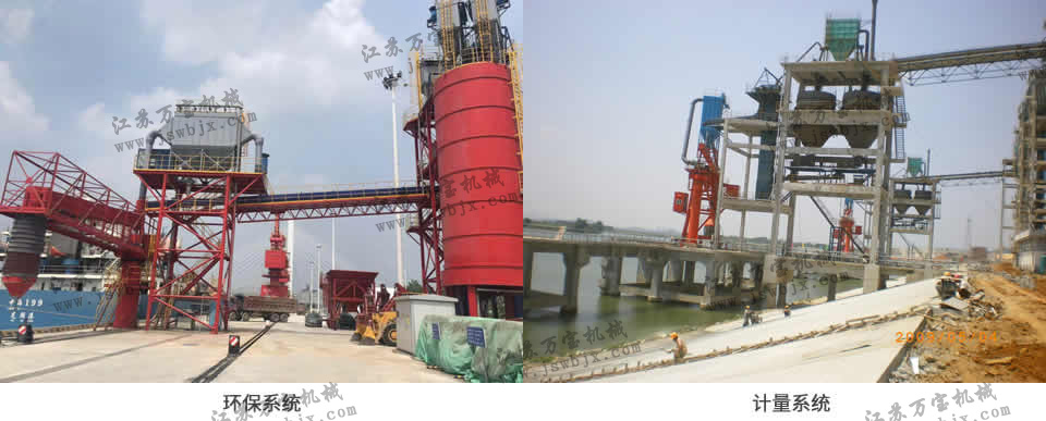 計量系統(tǒng):有2個計量倉,裝料、稱重、放料、稱重循環(huán)進行,每個計量倉有收塵器,通過調節(jié)流量閥和開關閥由斜槽到裝船機裝船。